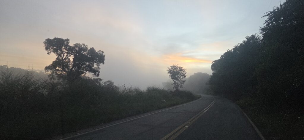 A visibilidade cai drasticamente, e isso exige direção cuidadosa, paciência e atenção total. Quando fomos rumo a Conceição do Mato Dentro, pegamos exatamente esse cenário: neblina fechada, estrada úmida e visibilidade curta.
